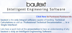 | Unser indischer Vertriebspartner schreibt begeistert (der Text ist nicht von uns): Bautext is the only integral software capable of handling technical calculations as well as Professional Technical Documentation .... in a Single Interface! Lets have a quick look at this presentation to have an understanding of why bautext is truly an Intelligent Engineering Software: Bautext is the first software in the world to introduce the concept of Calculation Line .... that makes it possible to perform all technical calculations with/without variables in a text line ! No spreadsheet or cells required! |