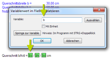Die Werte von Variablen können frei im Fließtext mit oder ohne