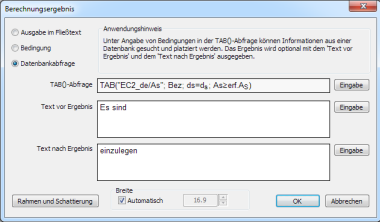 Ergebnisse, wie gewählte Materialien, Querschnitte oder Angaben zur Ausführung können intelligent mit dem