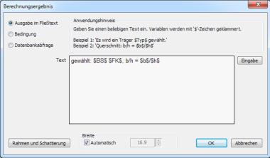 Das Ergebnis kann durch einen Rahmen ergänzt und somit hervorgehoben