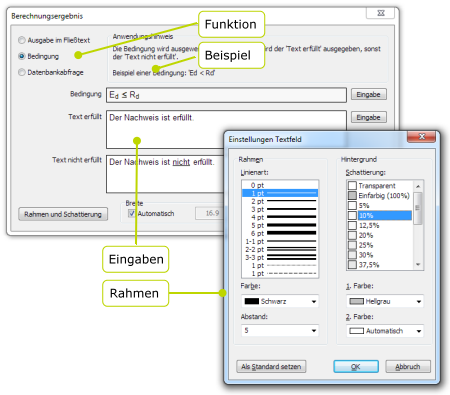 Ergebnisse, wie gewählte Materialien, Querschnitte oder Angaben zur Ausführung können intelligent mit dem
