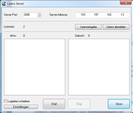 Im Dialog des Lizenzservers werden die angemeldeten Lizenzen mit