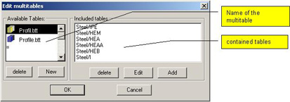Profile table function are shown for selection here. The list appears in a selection box (see right).