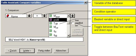 ß = beta). In the query, they can be specified as Greek characters. Subscript indices are replaced by normal text (example: b1 corresponds to the table variable b1).