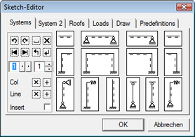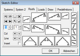 Executed in the same way as with beams, the procedure goes from left to right. The left cantilever can also be inserted to the left if there is sufficient space. The roof pitch can be 30°, 45° and 60°.