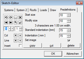 Joints: There are joints on the right side as individual characters for the corresponding roof pitches. They are inserted at the cursor position.