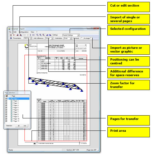 - Print area: The output area to be transferred. Note: Please do not only check the first page. It is quite possible that a larger area is required on subsequent pages.