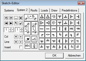 Bearings and joints: The selected symbol is written at the current position. The fixed and loose bearings replace the