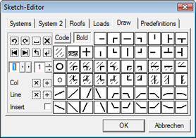 Bold mode, the characters have the same thickness as the beam, frame, support and roof elements. While drawing, the cursor can be positioned so that drawing can be continued. It is therefore possible to draw horizontal and vertical lines by repeatedly clicking on the relevant character.