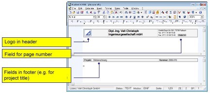 a simple table. The frames can be shown or hidden. If you use a table, please leave a blank line before and after the table (to do this, you may need to reduce the top edge of the page). Please design the headers and footers using the VCmaster tables only. Headers from other programs that were copied via the clipboard sometimes cause problems later.