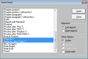 numbers of pages). Some fields are commonly only used in headers or footers,