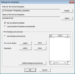 A template is called up automatically when starting VCmaster. Background images can be assigned to any template (see image on the right). Fields