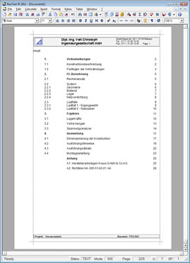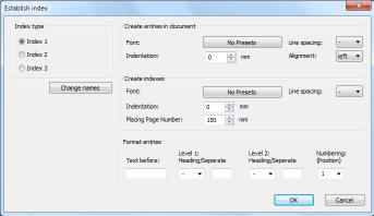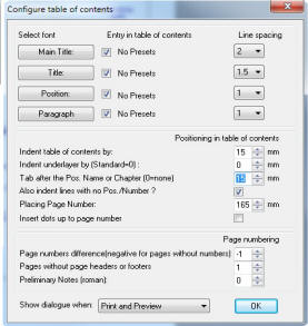 As an option the user can define, whether a page break is to be included in the table of contents. This option allows for the designing and structuring of comprehensive indicees, which require more than one page.