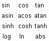 | Nazwy funkcji można podawać bezpośrednio lub za pośrednictwem menu. W drugim przypadku system automatycznie wprowadza odpowiednią nazwę, np. „SIN()“ . Następnie kursor umieszczany jest w nawiasie, wystarczy więc tylko wpisać wartość funkcji. Może nią być liczba lub zmienna. |