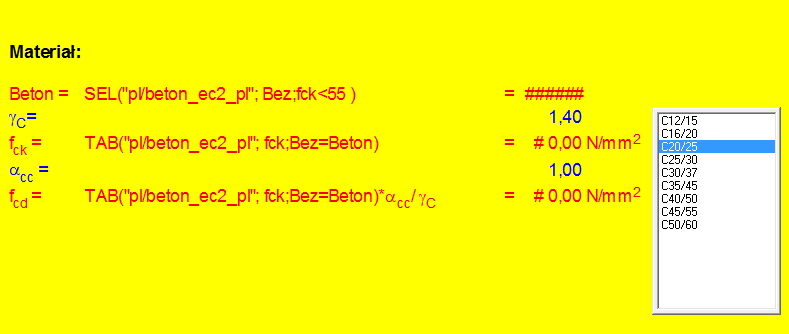 | Wymiarowanie żelbetu (z interpolacją): | ||||||||||