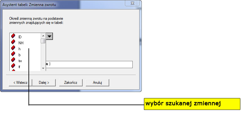 | 2) | Ustalanie szukanej wartości zwrotnej: |