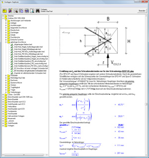 | Przeglądarka szablonów umożliwia wstawianie tekstów i obliczeń do edytowanego dokumentu. Jej dokładny opis znajduje się poniżej. Aby zmienić lub uzupełnić istniejący szablon, należy użyć polecenia Plik - Zarządzanie szablonami. Jako szablon można zapisać cały plik lub zaznaczoną część projektu. Ważna wskazówka: Nazwy wszystkich plików zapisanych w bibliotece szablonów zaczynają się znakiem "_" . Własne lub zmienione szablony, można wyróżnić w inny sposób. Po pierwsze, można je dzięki temu łatwiej odróżnić od innych szablonów, a po drugie w razie ponownej instalacji programu, nie zostaną one nadpisane. |