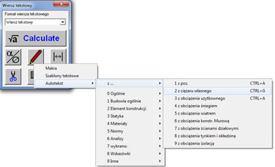 | wstawianie tekstów i obliczeń z projektów referencyjnych, |