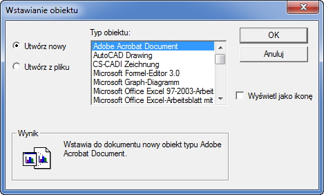 | Uruchamianie: | Menu: | Wstaw - Obiekt | ||||||||